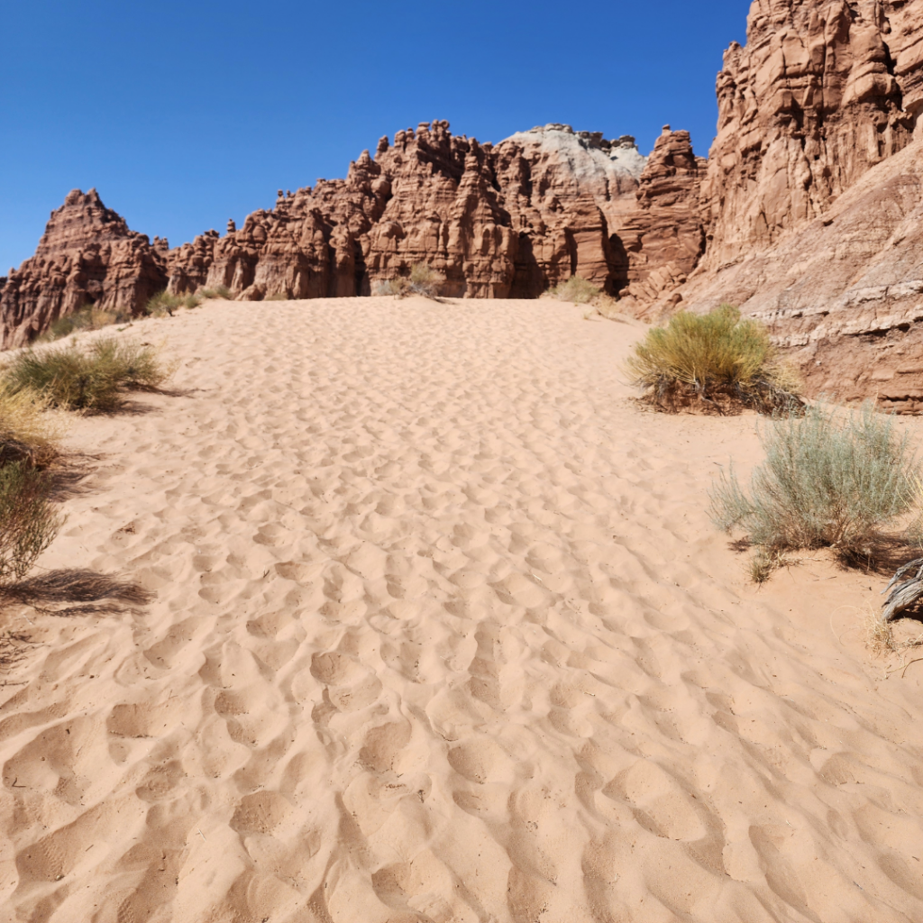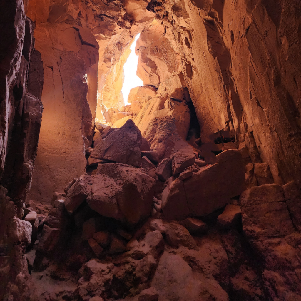 You know you’re getting close when you get to the Sandy Hill – it’s soft and steep, and zaps your energy. Fortunately, the sandy hill isn’t very long and you’re almost there once you make the climb! Near the last quarter mile, the trail shifts from hiking to more of a Class 2 scramble. You’ll descend into a dry wash filled with loose sand and rock.