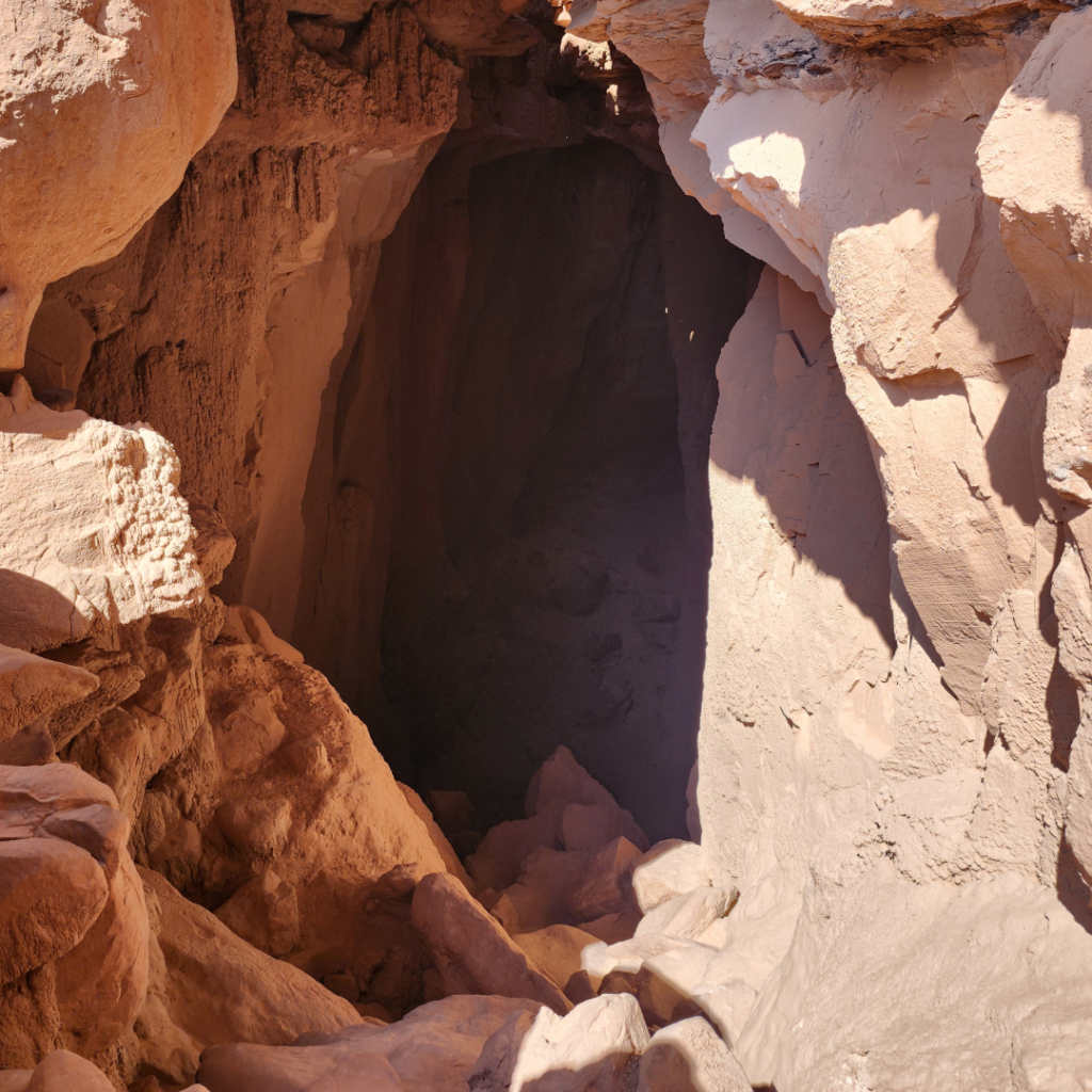 There’s a short, steep climb up into the Lair entrance. This can feel tricky, especially if your legs are tired or the sandstone is hot, but it’s manageable without technical gear.