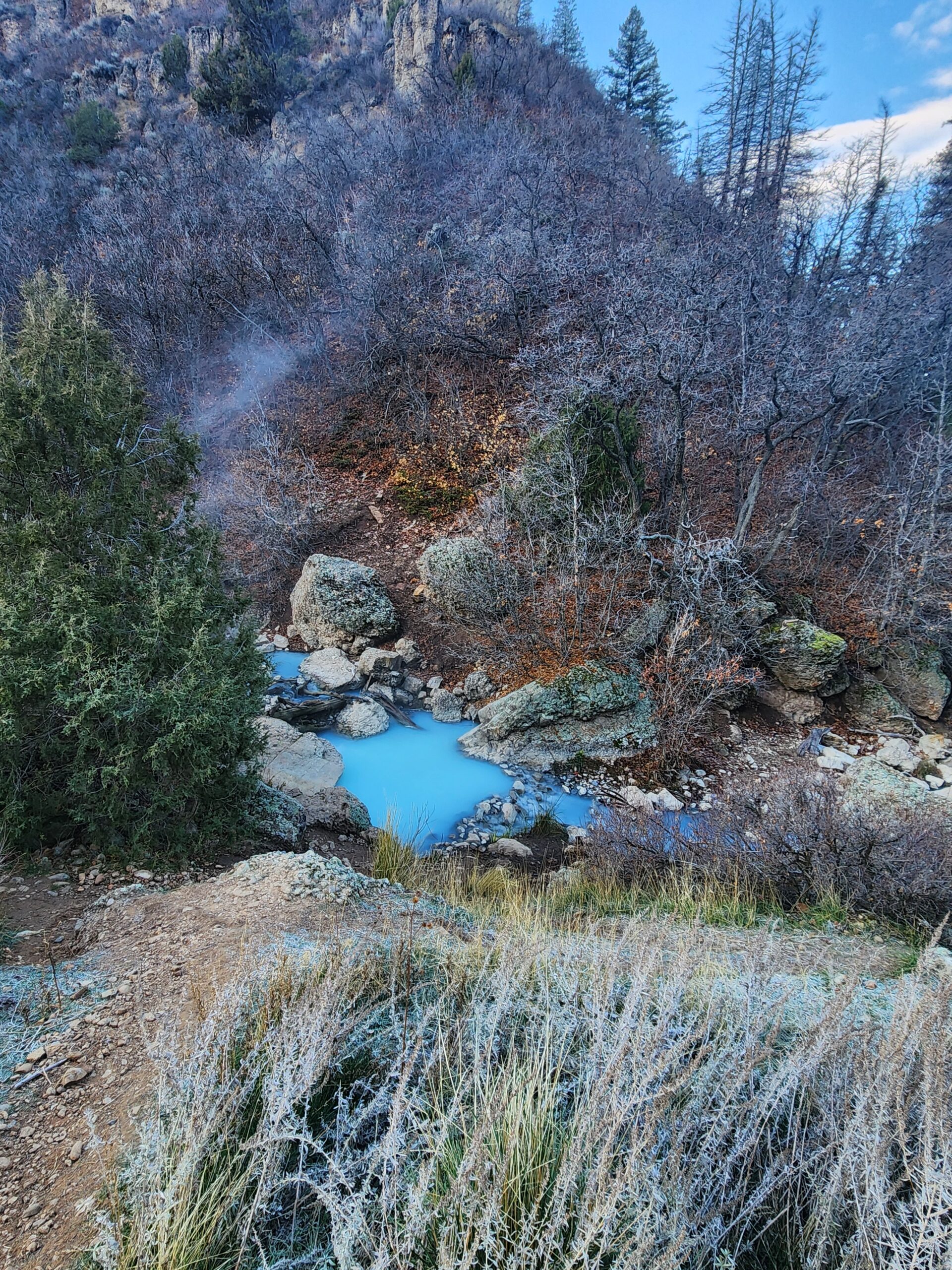 The pools vary in depth and temperature. We tested a few before settling into one with the perfect mix of warm mineral water and creek-cooled flow. The contrast between the fridgid canyon air and the toasty pools was pure magic.