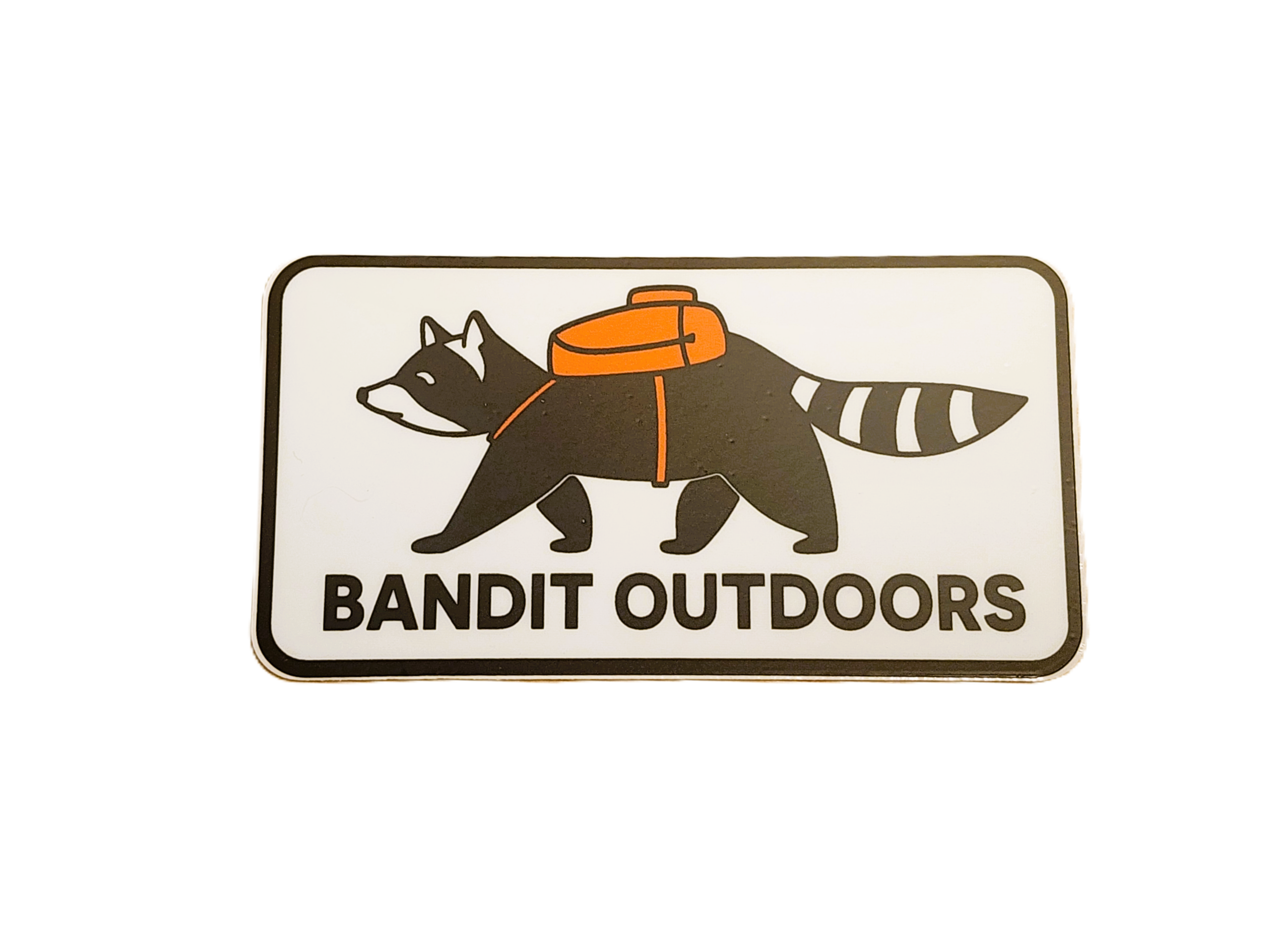 This premium vinyl bumper sticker measures at 7″ x 3.5″ and features our iconic Bandit raccoon — backpack on, tail stripes bold, ready to Steal Adventure. Weather-resistant, durable, and easy to apply, it’s perfect for cars, coolers, laptops, water bottles, or anything that needs a little Bandit attitude.