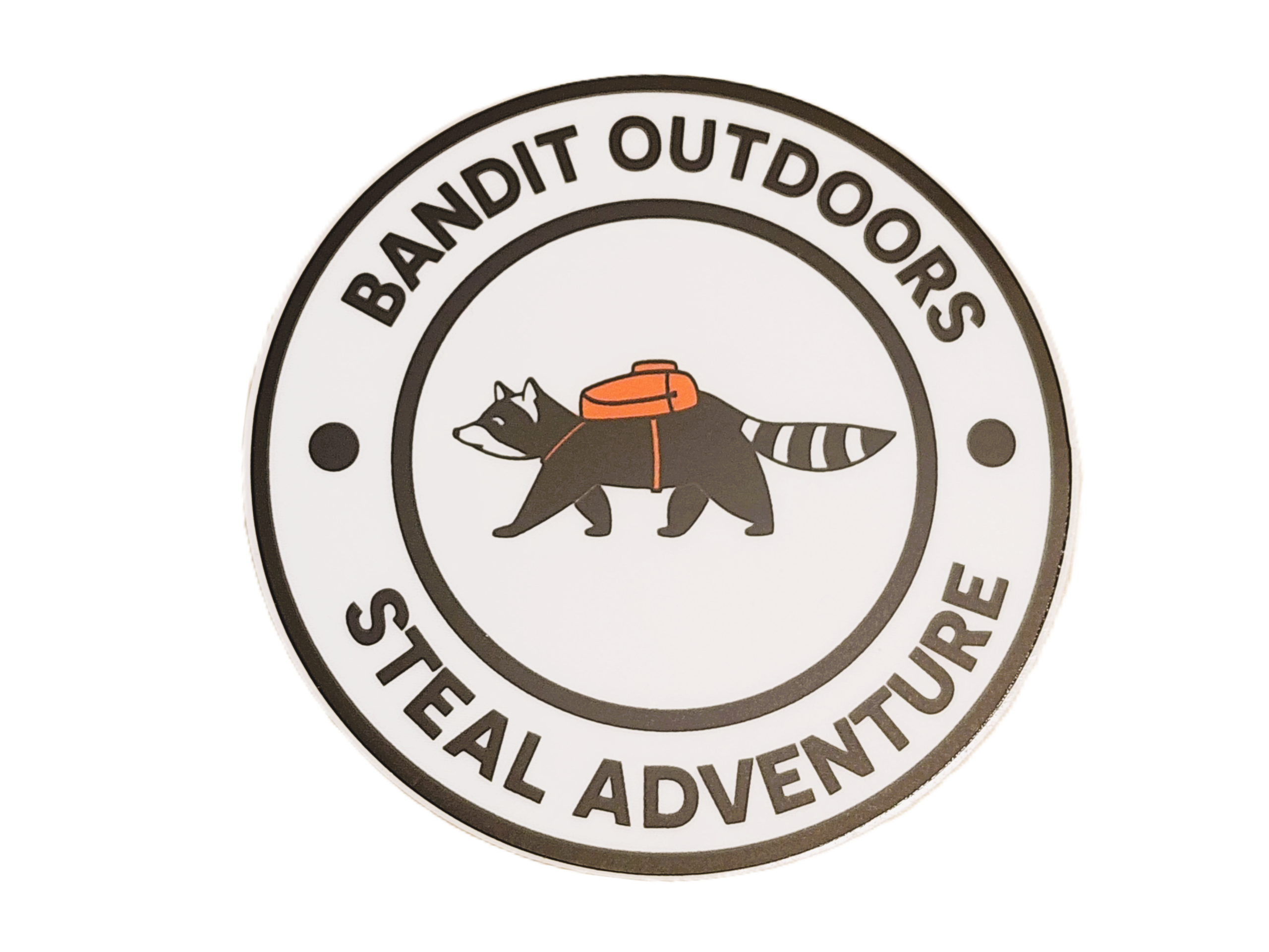 This 3″ premium vinyl circle sticker features our classic Bandit Outdoors logo — complete with our mischievous trail-running raccoon and the motto we live by: Steal Adventure.