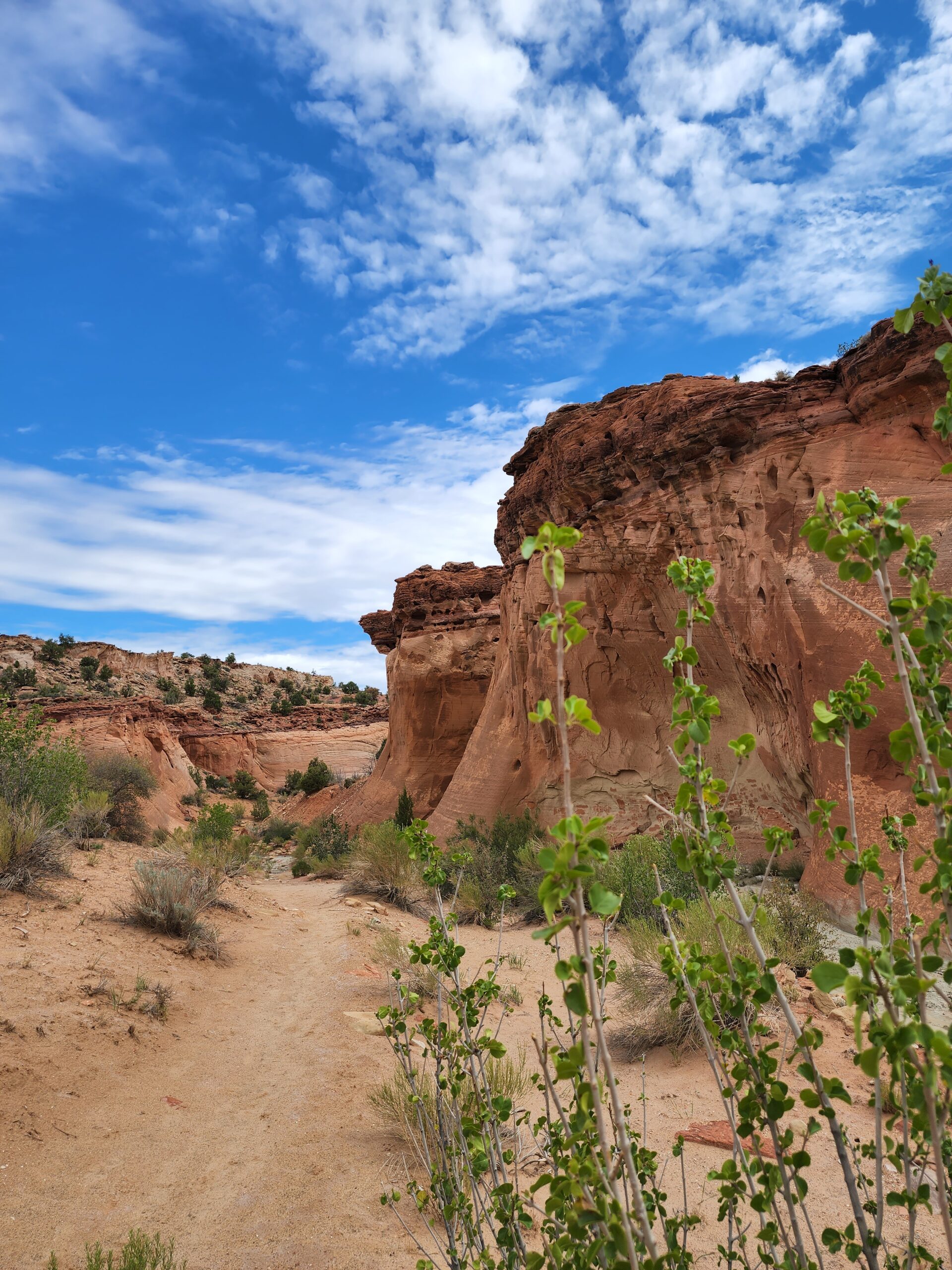 The trail itself is mostly obvious until it isn’t. You’ll weave back and forth across sandy washes, and if you stray too far into loose desert routes, you’ll notice it quick enough — because those false trails just lead you in wide loops back to the real line – look for cairns along the way.